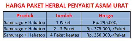 Harga paket herbal untuk mengatasi penyakit asam urat Rp. 295.000